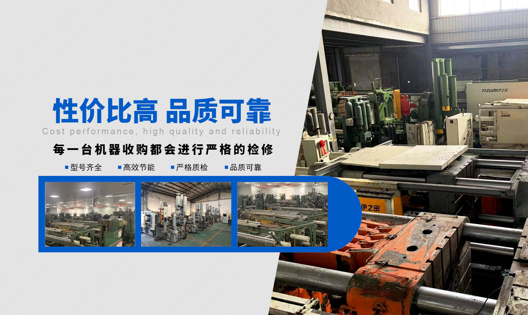 ? ? ? ? 在當(dāng)今市場競爭如此激烈、產(chǎn)品利潤日漸微薄的嚴(yán)峻形勢下,優(yōu)質(zhì)可靠的二手壓鑄機尤為凸顯其順應(yīng)壓鑄行業(yè)市場的極大優(yōu)勢,我們限度的為客戶減少項目投資風(fēng)險、降低投資成本、優(yōu)化整合運作資金。同時,盤活閑置二手設(shè)備,創(chuàng)造社會剩余價值,為推動我國循環(huán)經(jīng)濟建設(shè)貢獻力量!